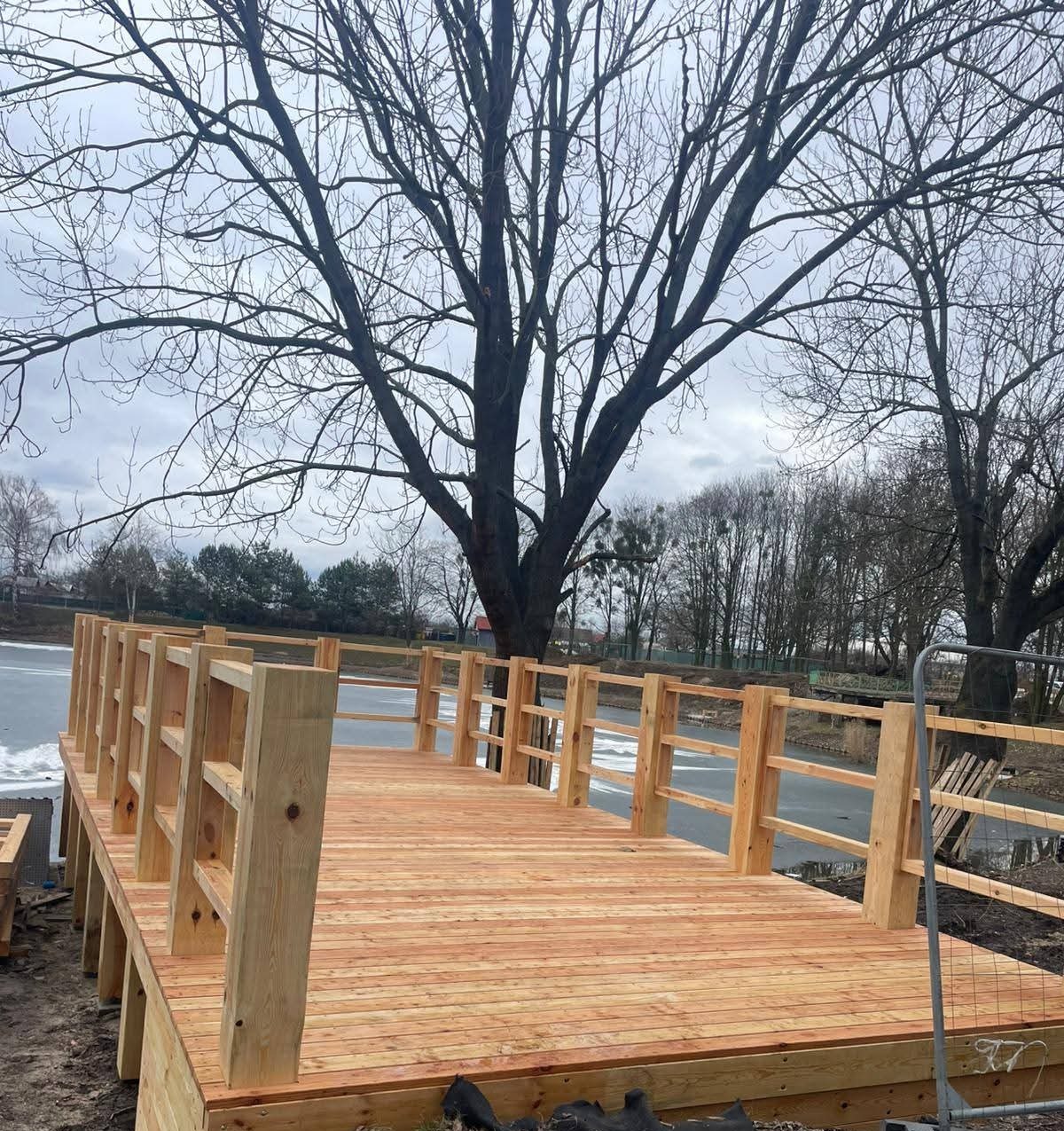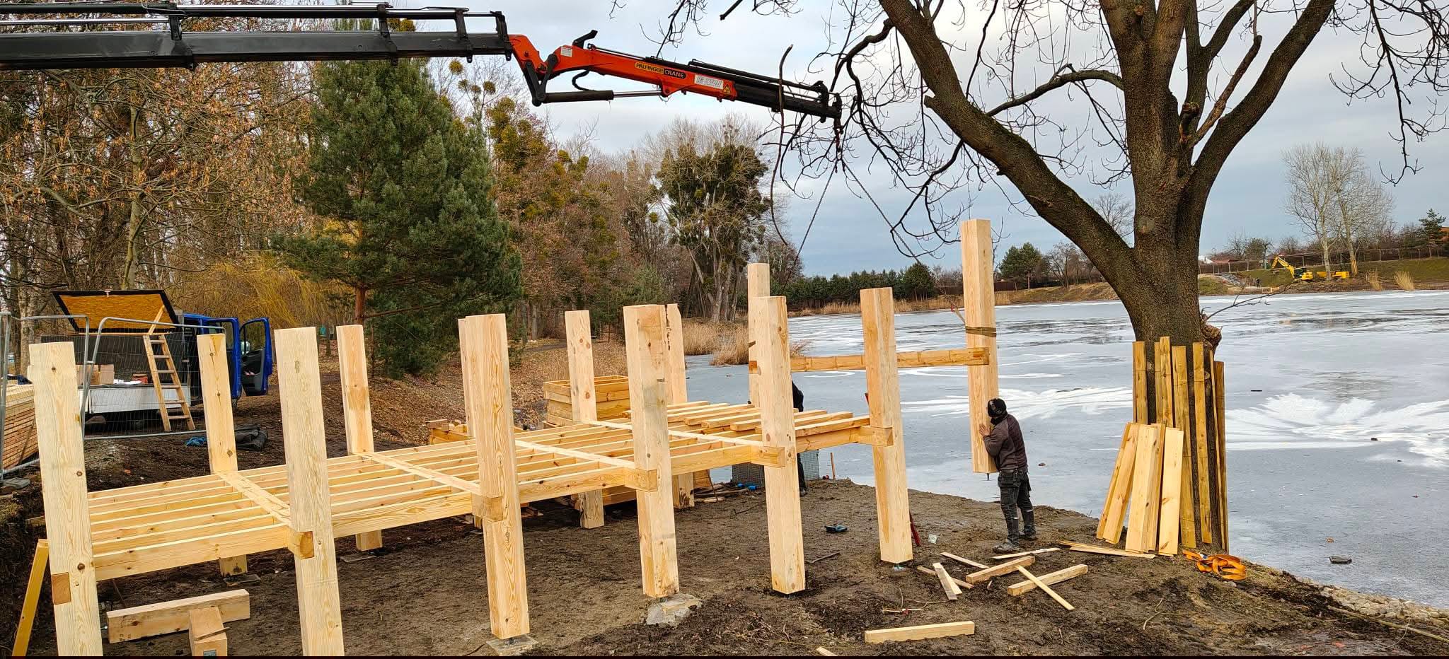Konstrukcja realizowana w pięknych okolicznościach przyrody. Podest obserwacyjny nad Stawem Cegielnia w Grodkowie pozwolił na stworzenie miejsca przyjaznego naturze i lokalnej społeczności, o szerokich walorach edukacyjnych i integracyjnych. Podest dla niepełnosprawnych umożliwia korzystanie z atrakcji również osobom o szczególnych potrzebach. Całość wykonana w drewnie – naturalnie, trwale i estetycznie.